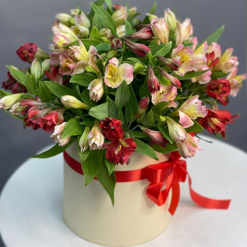 Композиция в шляпной коробке из 21 альстромерии