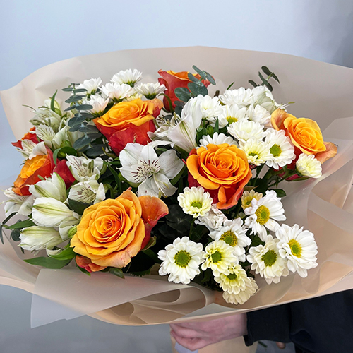 Заказанный букет вы можете забрать у нас в магазине по адресу: Москва: ул. Большая Семеновская 11с3 - с 7:00 до 24:00!